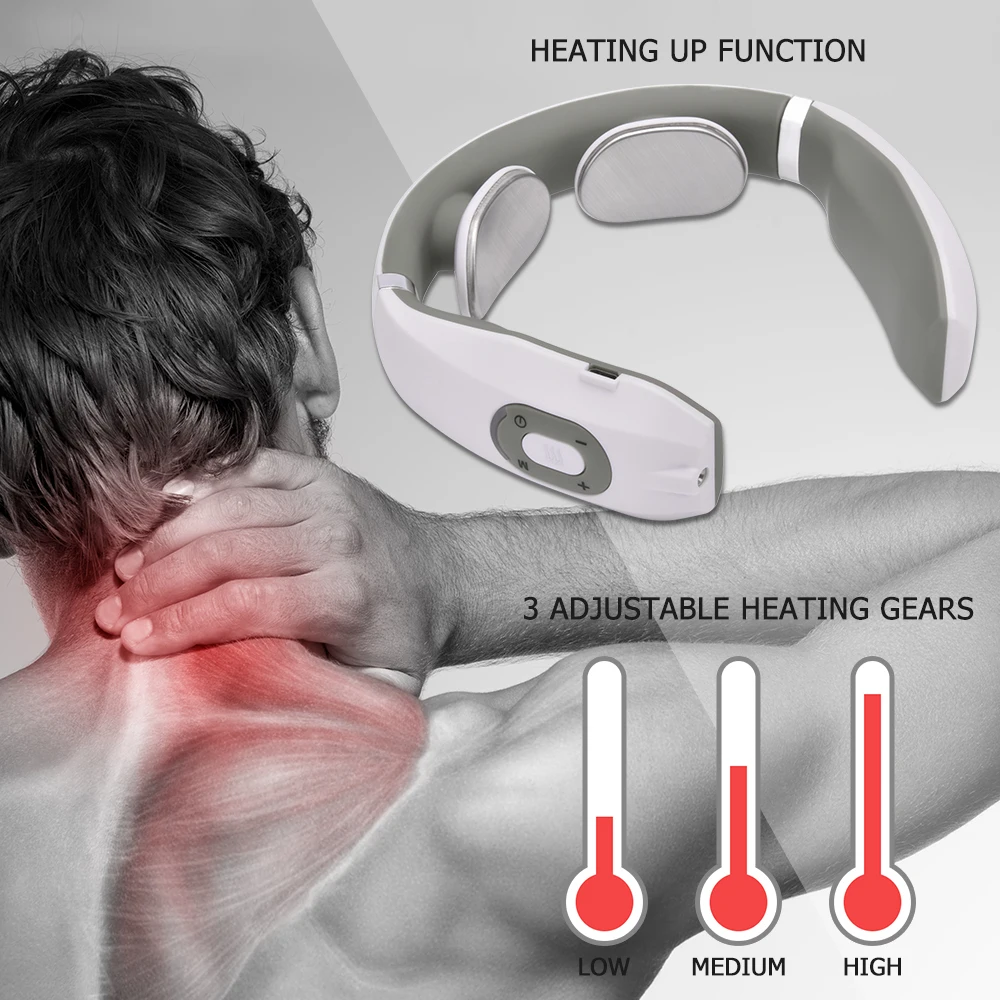 BEST USB Electric Pulse Neck Massager Far Infrared Heating Pain Relief Health Care Relaxation Tool Intel